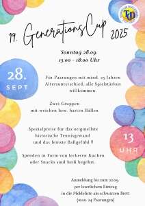 Am 28.09.2025 geht der beliebte GenerationsCup in die 19. Runde !!!