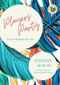 Am 27.07. findet ab 16 Uhr unsere traditionelle Players Party für ALLE Mitglieder des TCD statt!
