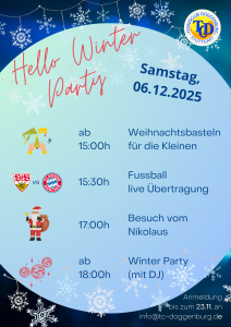 Am Freitag, 6. Dezember steigt ab 19 Uhr unsere HelloWinterParty … für die Jüngsten bereits ab 17 Uhr mit Besuch des Nikolaus!
