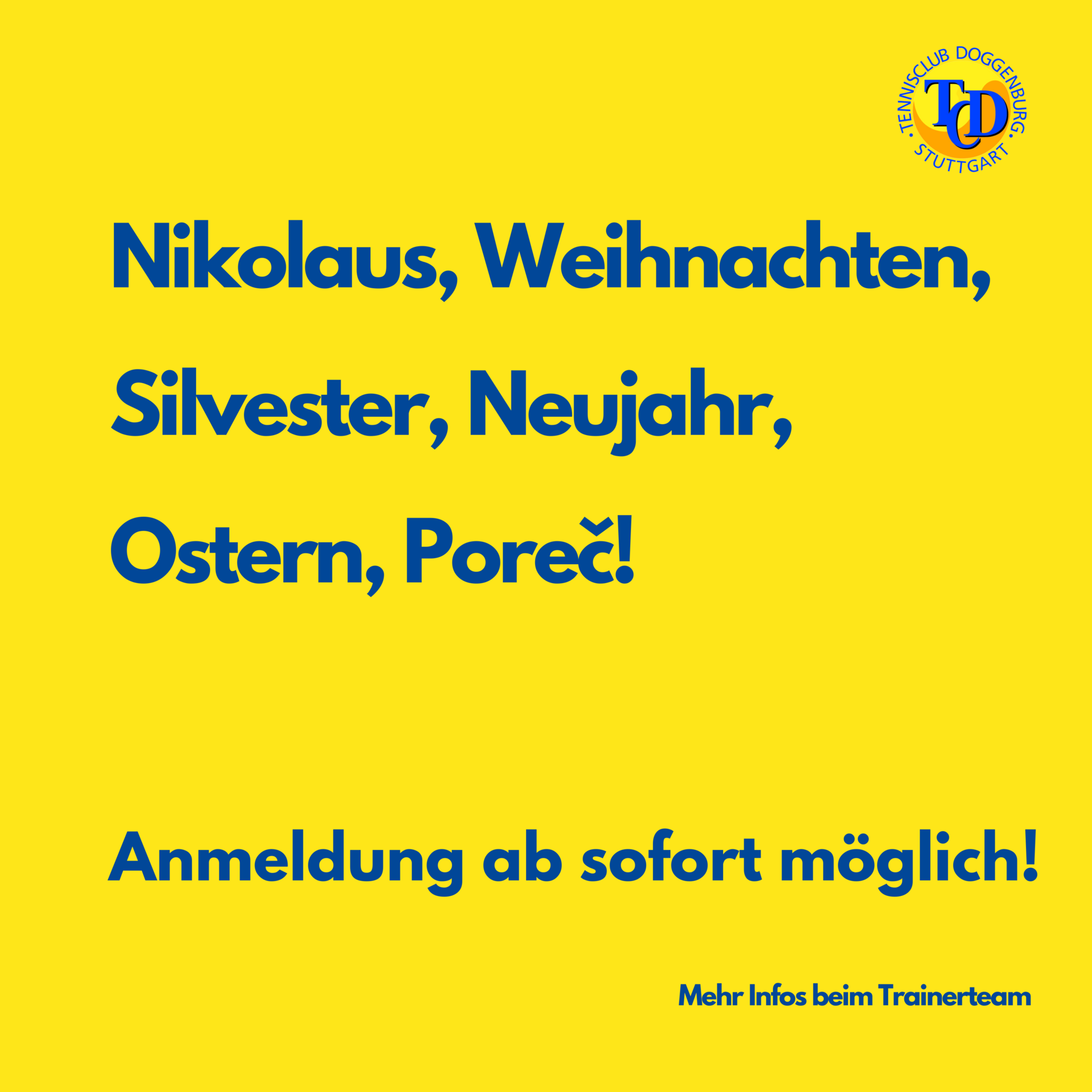 Bitte erklärt eure Teilnahme an der Party via eMail an die info@tc-doggenburg.de, aufgeteilt nach Nikolaus oder Party oder Beides.